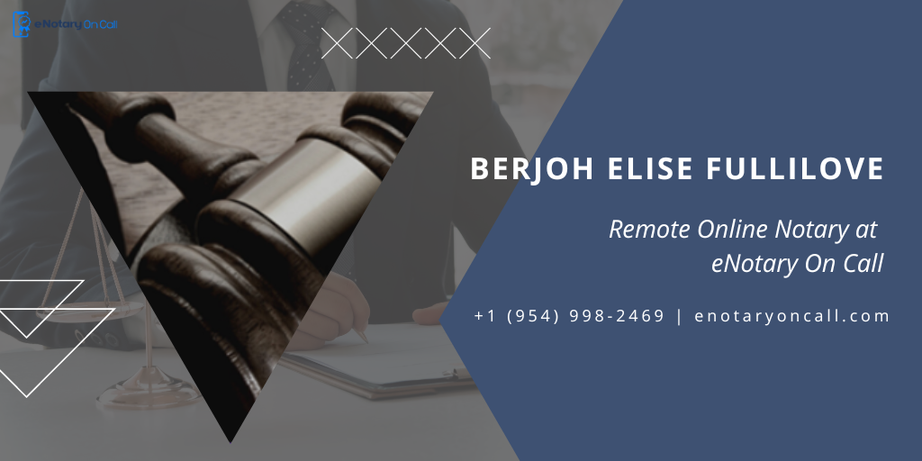 Need a notary? Berjoh Elise Fullilove, an expert remote notary at eNotary On Call is here to assist you online. Schedule your appointment today!